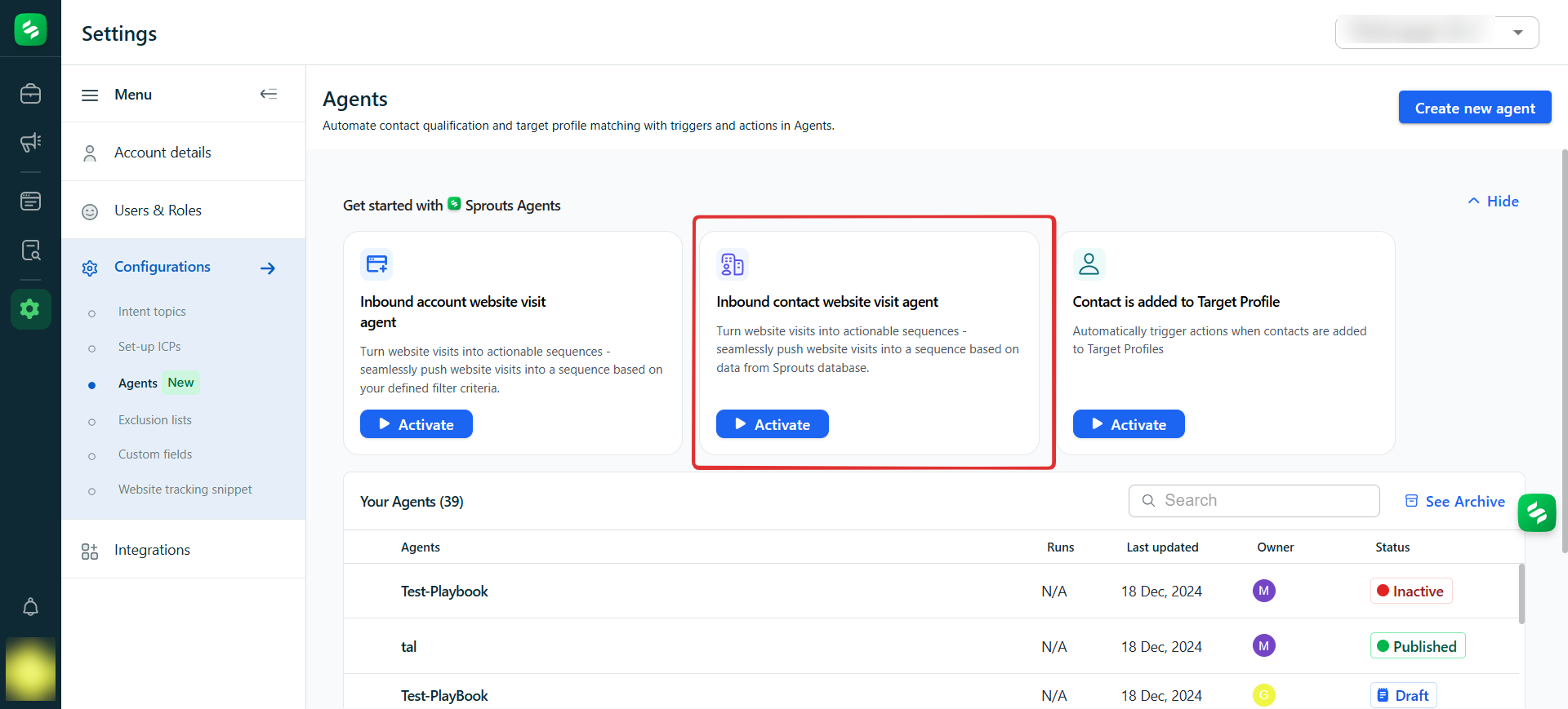 The Inbound Contact Website Visit Agent converts contacts revealed during website visits into actionable sequences. By leveraging data from the Sprouts database, it automatically pushes these contacts into predefined sequences, enabling personalized engagement and efficient lead management.